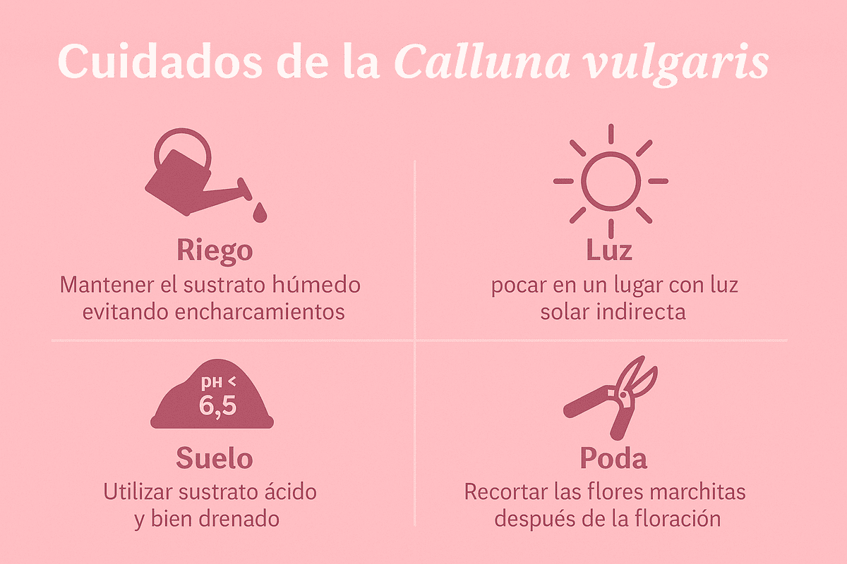 Es una planta altamente resistente incluso se usan como decoración cuando ya están secas, y es muy común en Europa hacer coronas con las varas de su flor para ponerlas en las puertas de las casas. Para el cuidado de las Callunas hay que tener claro varios aspectos importantes:
