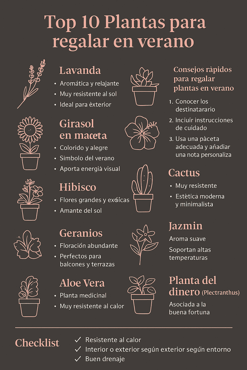 Regalar plantas en verano es una forma elegante, sostenible y fresca de sorprender a alguien especial. En esta época del año, la naturaleza brilla con fuerza y muchas especies florecen o muestran su mejor versión. Pero, ¿cuáles son las mejores plantas para regalar en verano? En este artículo descubrirás una selección de plantas ideales para regalar durante los meses más cálidos, además de consejos útiles para conservarlas, ideas originales y una guía práctica para elegir la planta perfecta para cada ocasión.