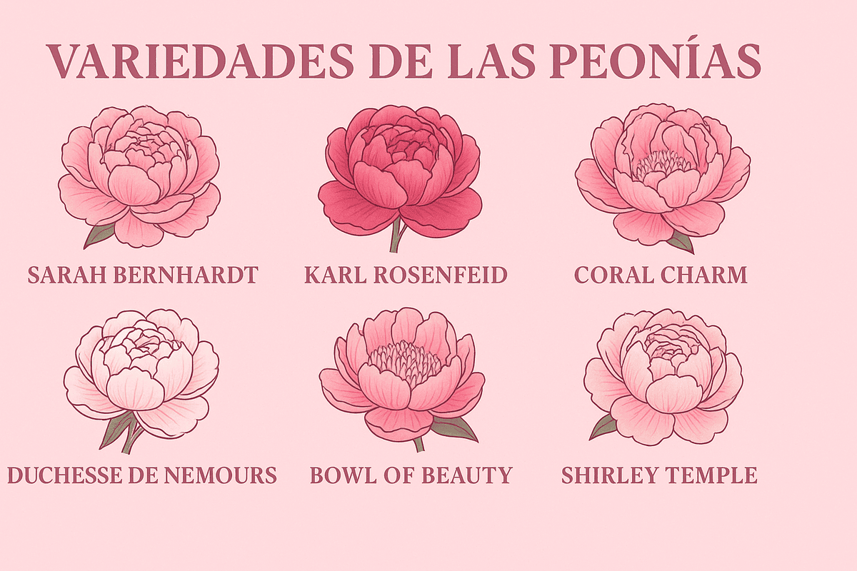 Existen más de 30 especies de peonías y cientos de híbridos. Cada una tiene características únicas, desde el tamaño y color de la flor hasta su aroma. Aquí te mostramos algunas de las variedades de peonías más populares en floristería y jardinería: